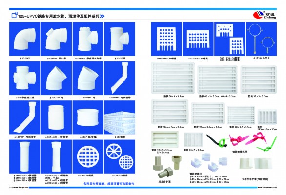 30頁(yè):各地生產(chǎn)施工現(xiàn)場(chǎng) ? ? ? ? ? ? ? ? ? ? ? ? ? ? ? ? ? ? ? ? ? ? ? ? ? ? ?31-32頁(yè):125-UPVC鐵路專用泄水管、預(yù)埋件及配件系列